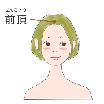 百会から指二本分前にあるツボ。指の腹でやさしく押します。