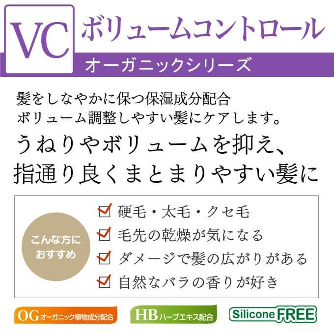 うねりやボリュームを抑えて、まとまりやすい髪に仕上げるVC(ボリュームコントロールタイプ)