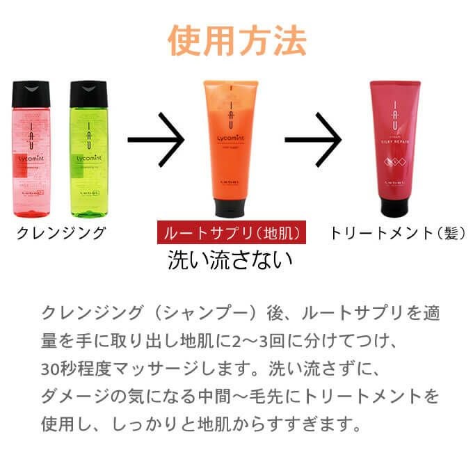 ルートサプリを洗い流さずに、その後ダメージの気になる中間~毛先にヘアトリートメントを使用し、しっかりと地肌からすすぎます。 - 成分