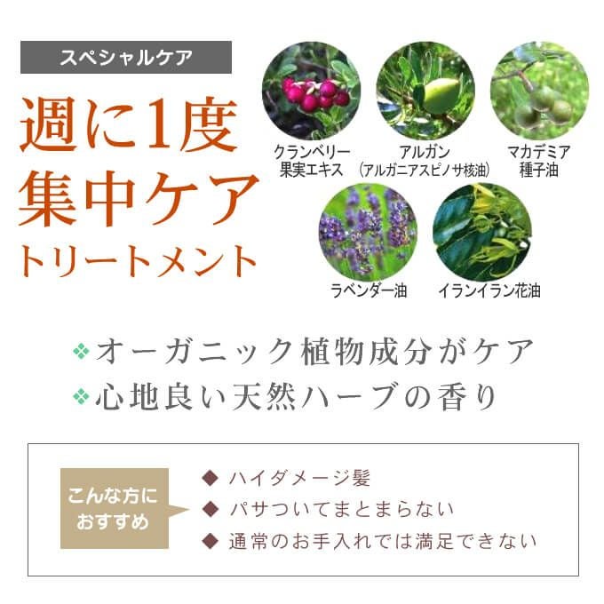 通常のお手入れでは満足できないほどダメージが進行し、パサついてまとまらない髪にオススメ。