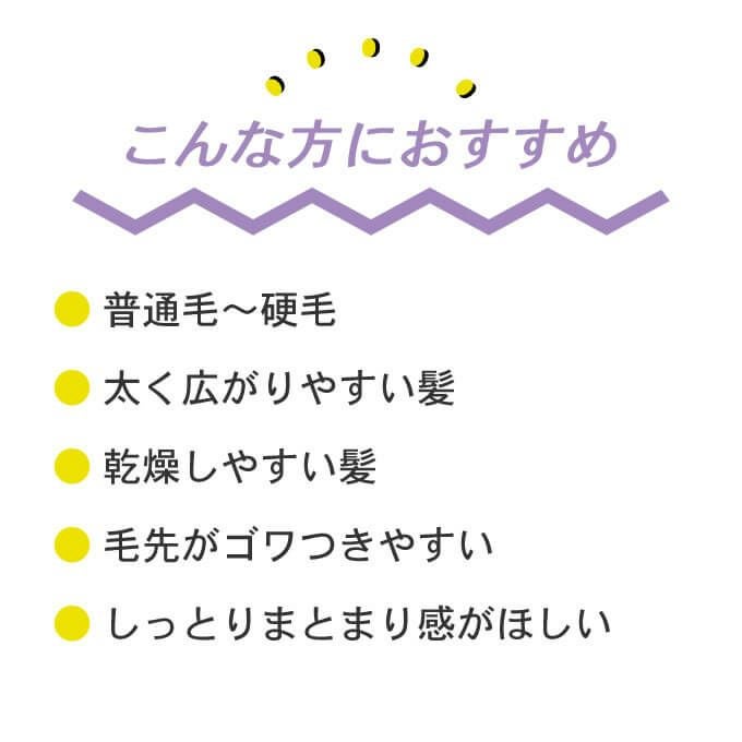 パサつき・毛先がゴワついて広がる髪に、毛先まで艶やかでしっとりとしたまとまりを与えます。
