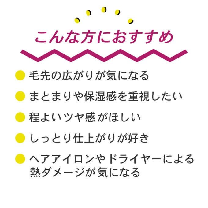 熱ダメージから髪を守り、毛先のまとまりのあるツヤ髪に。