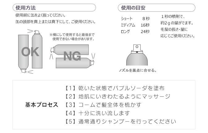※使用量の目安…1秒の噴射で約2gの量がでます。毛髪の長さ・量に応じてご使用ください。