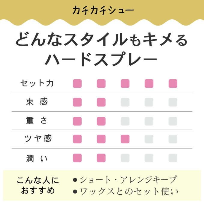スタイルフォルムやポイントメイクまでカチッとキープするハードスプレー。