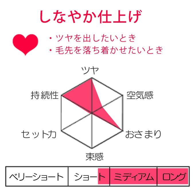 ストレート~ウェーブまで、パサつきやすい毛先を落ち着かせる、しなやか仕上げ!