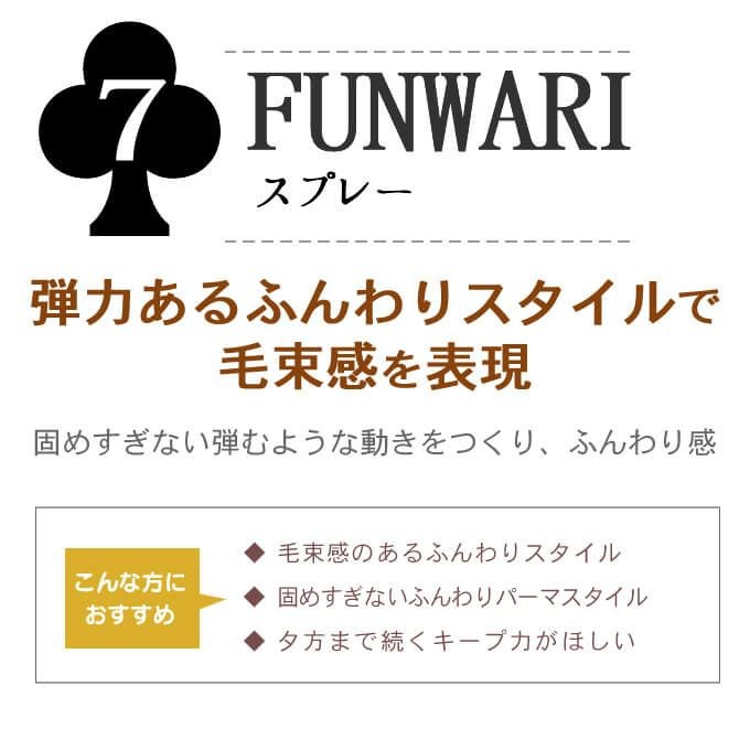 - 適量を髪全体にスプレーし、手で整えてください。