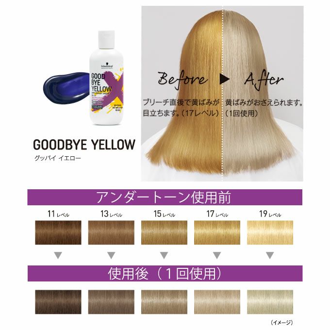 高濃度配合された色素(酸性染料とHC染料)がブリーチ後の「黄ばみ」をしっかり消します。