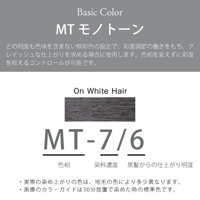 イメージ通りの発色を叶えるN(ナチュラル)系と色相環という色構成で、多彩な髪色を表現できます。