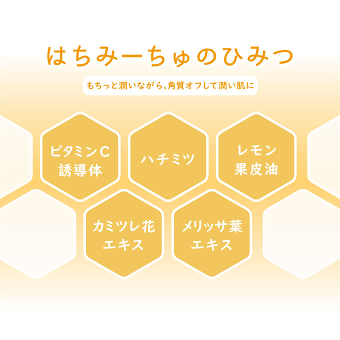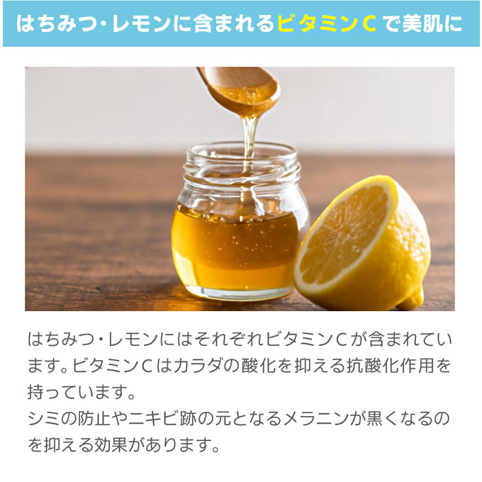 ハチミツとレモンの力で古い角質や汚れをオフして、生まれたてのぷるっとつる肌に。