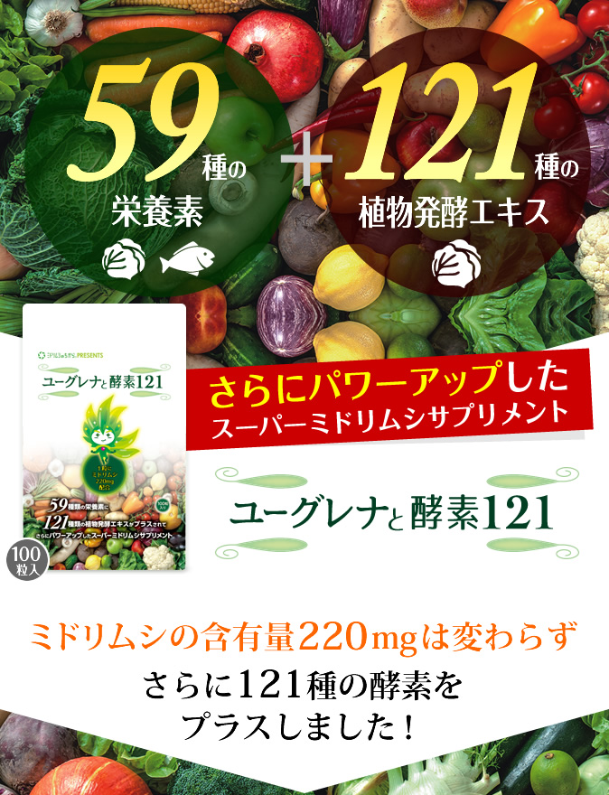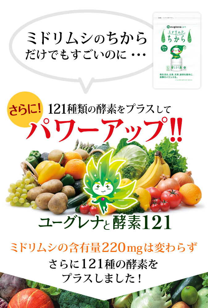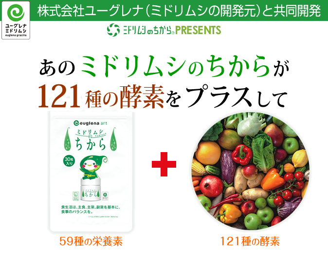 ミドリムシのちからPRESENTS!121種類の酵素をプラスしてパワーアップ!