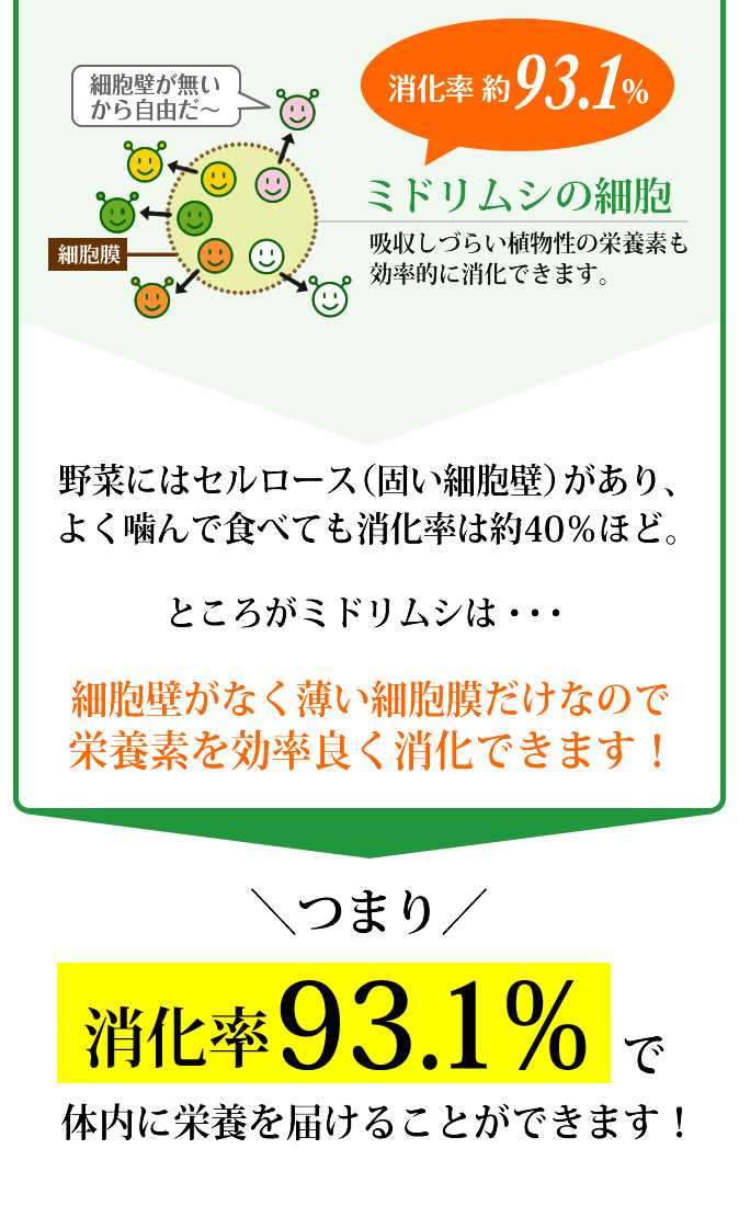体内への消化率も良いので、効率良く栄養素を消化吸収できます。