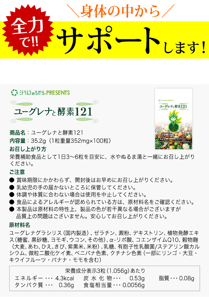 - ユーグレナと酵素121(ユーグレナグラシリス加工食品)