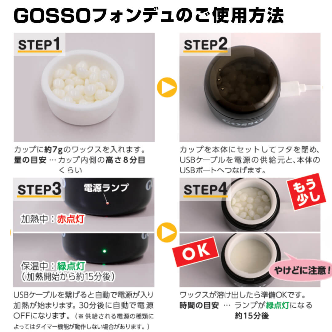 温度調整(30分の保温機能付)をしなくても自動でちょうどいいGOSSOワックスに。