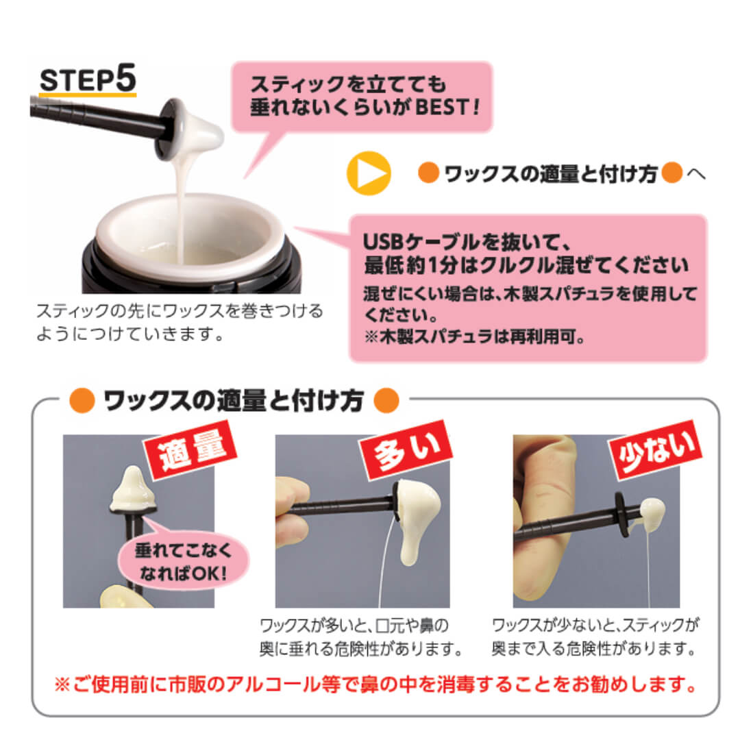 - 付属の専用ワックス&専用スティック以外の使用はしないでください。