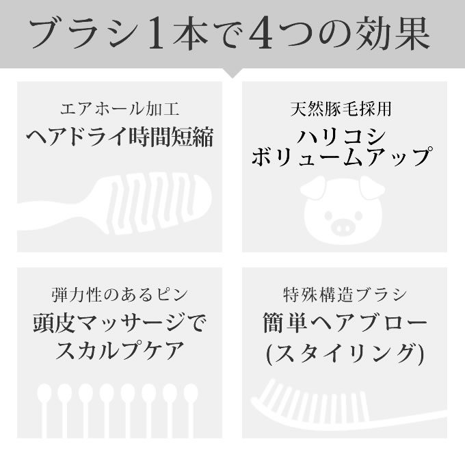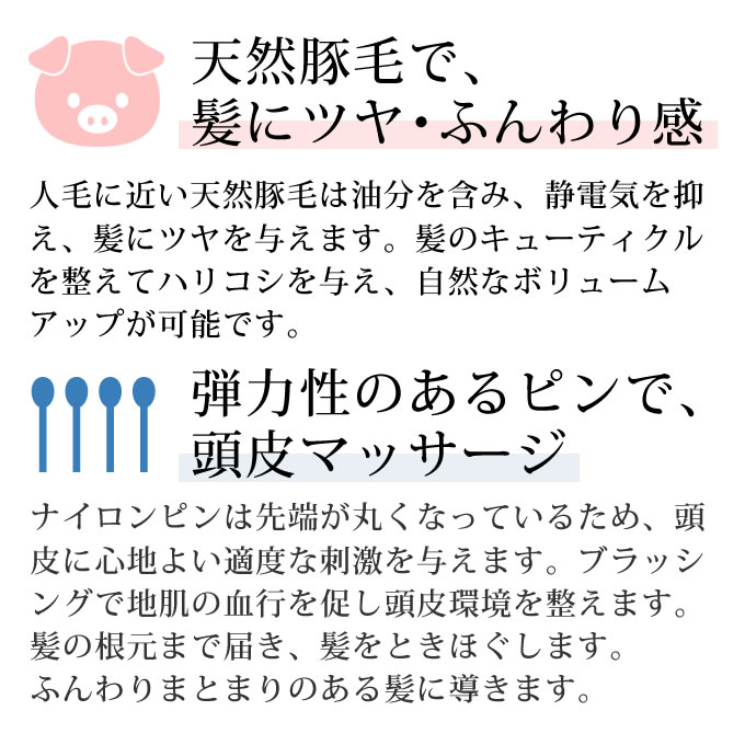 ●天然豚毛採用し、髪にツヤ感・自然なボリュームアップ