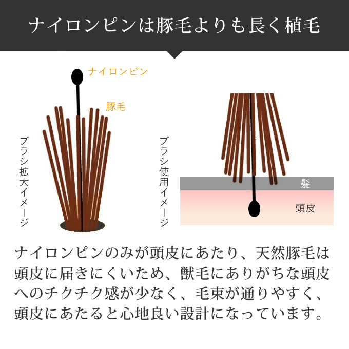 ●弾力性のあるナイロンピン採用で、心地よい頭皮ケア