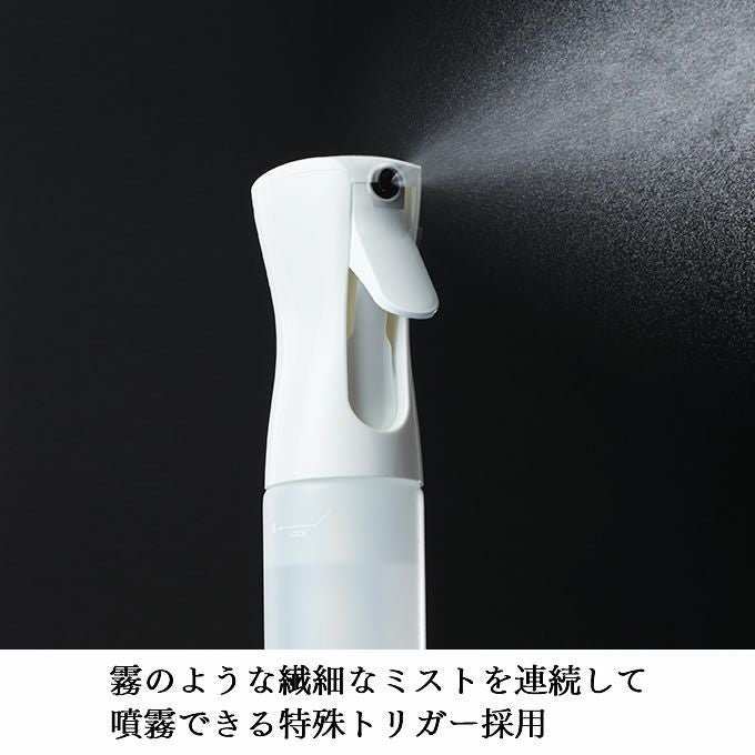 高圧ガスを使用せずに、霧のようなミストを連続して噴霧できる特殊なトリガーを採用。