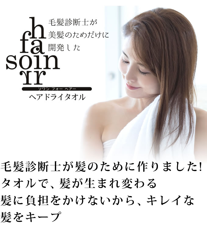 - 毛髪診断士が美髪のためだけに開発したヘアドライタオル soin for hair (ソワン フォー ヘアー)