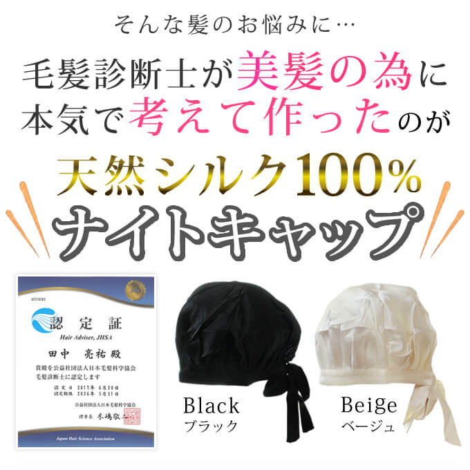 毛髪診断士が美髪へ導くために開発した、シルク100%のナイトキャップ。