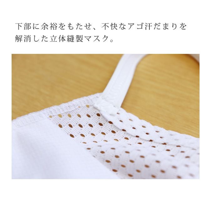 下部に余裕をもたせ、不快なアゴ汗だまりを解消した立体縫製マスク。