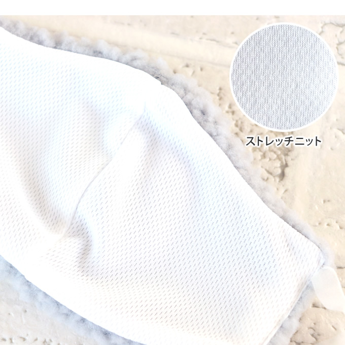 マスクの内側には、肌をサラサラに保ち、しなやかで優しい肌触りのストレッチニット使用。