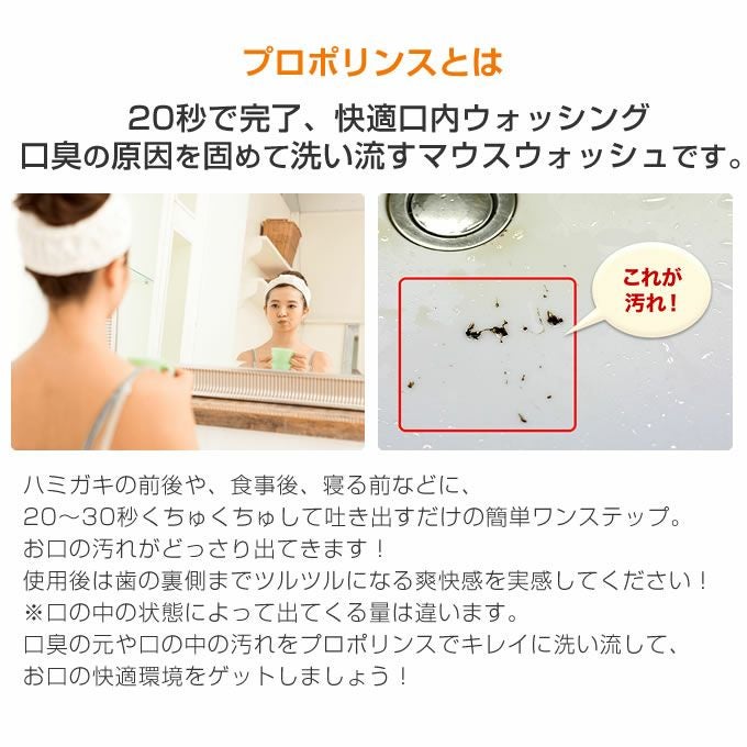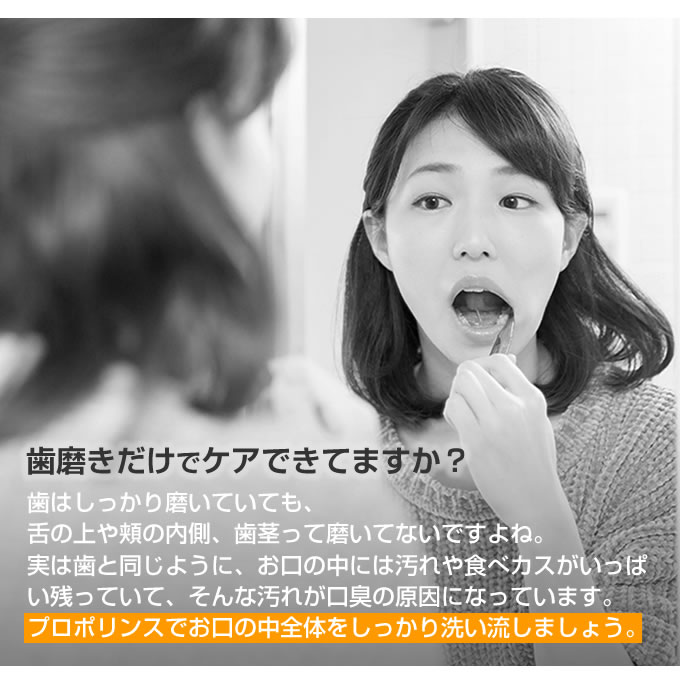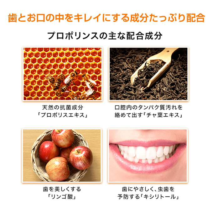 プロポリスエキス(香味剤)配合で、マイルドな爽快感。