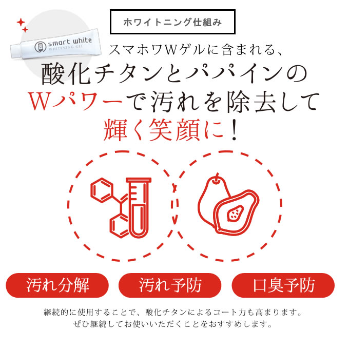 酸化チタンによる光触媒とパパインのWパワーで汚れを除去して輝く笑顔に!