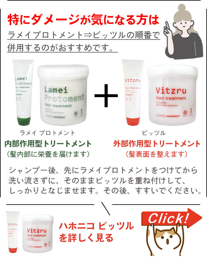 髪の栄養補給トリートメントとして、傷んだ部分の補修剤として、ビッツルトリートメントと一緒にお使いいただければ、より一層効果的!