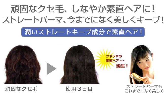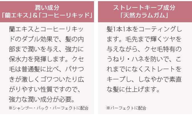 クセ毛・縮毛矯正/ストレートパーマ毛に。髪の内部まで潤いを与え、頑固なクセ毛もしなやかで素直な髪に導きます。