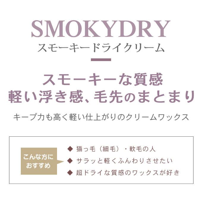 白みがかったスモーキーな質感と軽い浮き感、毛先のまとまりでドライっぽい雰囲気を表現するスモーキードライクリーム。