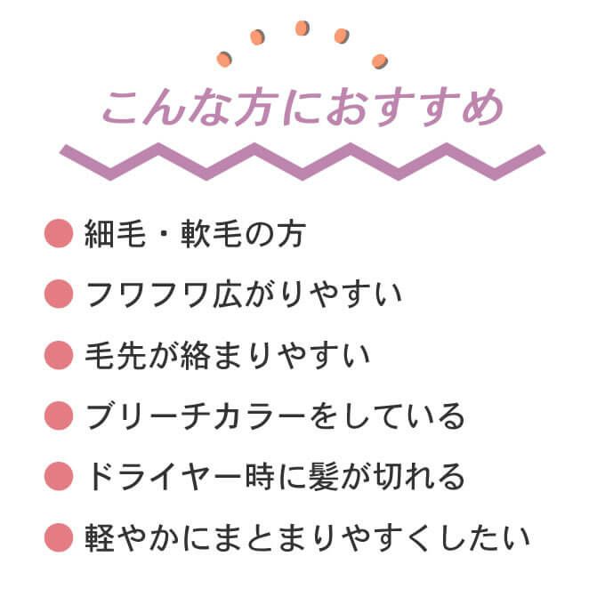 毛先が絡まり、フワフワ広がりやすいブリーチ毛(軟毛)の方におすすめ。