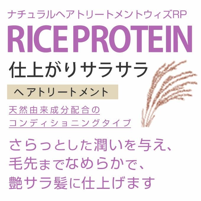 ライスプロテイン(加水分解コメタンパク)、米胚芽油が、髪のうるおいを保って、毛先までなめらかでサラサラの髪に仕上げます。