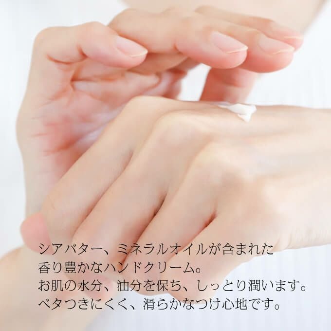 シアバター、ミネラルオイルがたっぷり含まれたリッチで香り豊かなハンドクリーム。
