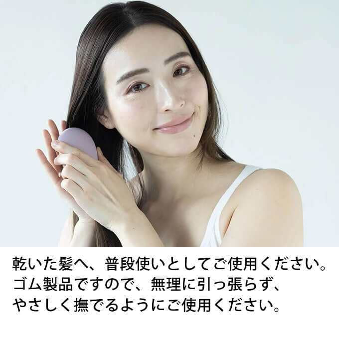 - 乾いた髪へ、普段使いとしてご使用ください。ゴム製品ですので、無理に引っ張らず、やさしく撫でるようにご使用ください。