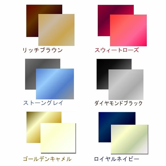 カラーは、 「リッチブラウン」「スウィートローズ」「ストーングレイ」「ダイヤモンドブラック」「ゴールデンキャメル」「ロイヤルネイビー」の6色からお選びいただけます。