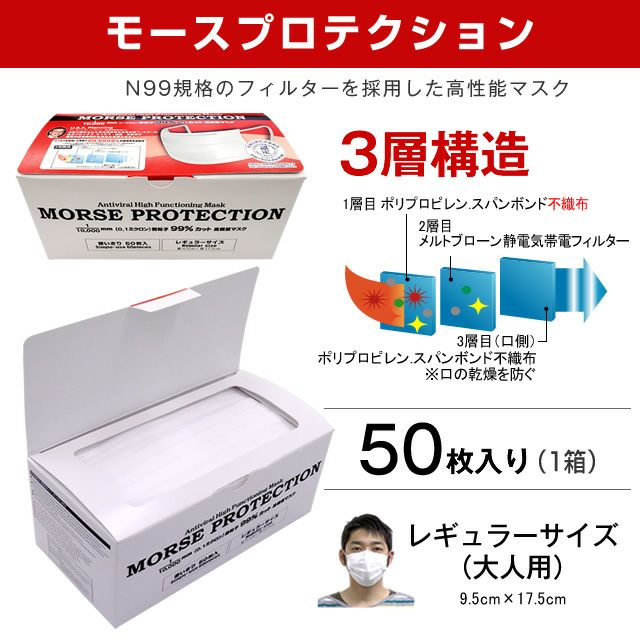 高機能マスク モースプロテクション 50枚入り(1箱) レギュラーサイズ(大人用) 箱入タイプ