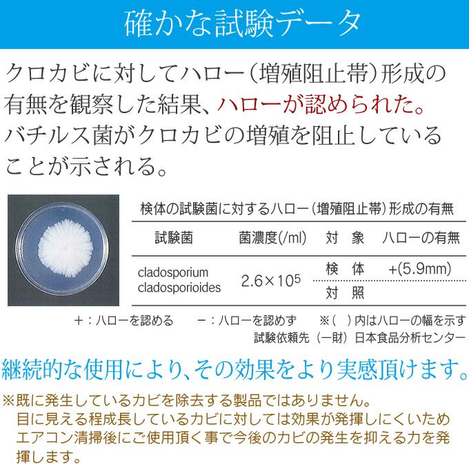 エアコンのお掃除後には「シュシュキッキ・バイオ for A/C」設置。