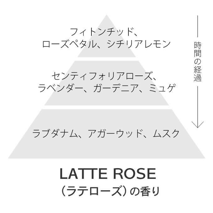 華麗で品のあるセンティフォリアローズの香りが、一際凛として芳醇さを放ちます。その芳醇さには、ふわりとしたホワイトフローラルの甘みが調和し、ガーデニアとグリーン調のミュゲが彩りを添えます。さらに、シチリア産レモンのフレッシュな香りが繊細に交じり合い、スモーキーなアガーウッドとラブダナムがバルサミックな重厚感をもたらします。