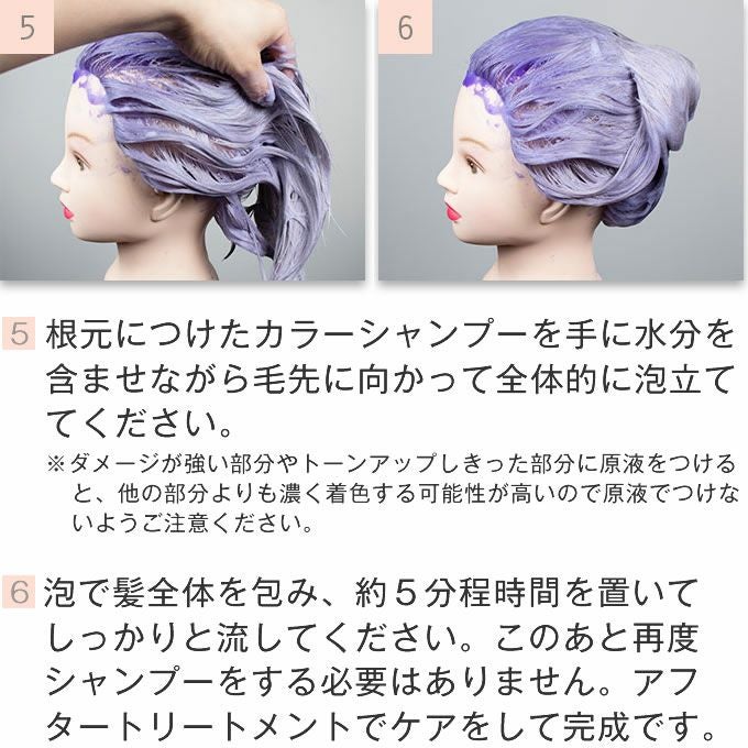 ブリーチ後の黄ばみをくすませる為のシャンプーとしてご使用ください。