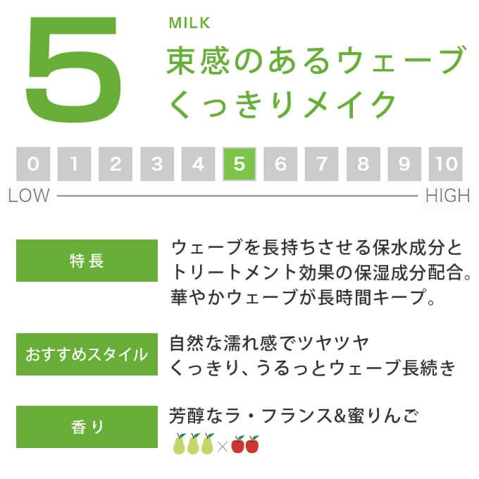 ウェーブスタイルを表情豊かに再現し、まとまりをキープするスタイリングミルク。