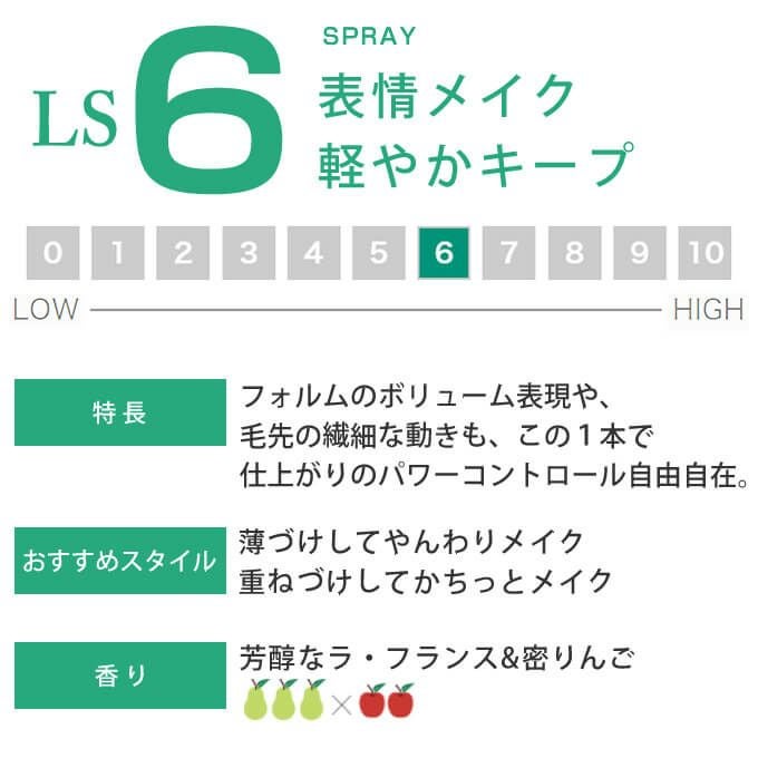●ソフトに仕上げたいときは、髪から少し離して薄づけでご使用ください。アクセントをつけたり、しっかりキープさせたい部分には、再度スプレーして調節することができます。 - 成分