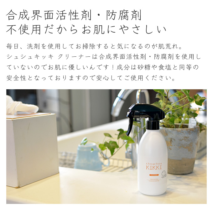 合成界面活性剤、防腐剤不使用で環境にも優しいクリーナー(洗浄液)です。