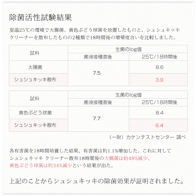 洗浄剤の除菌活性試験(※1)において大腸菌、黄色ブドウ球菌に対して効果を立証済み。