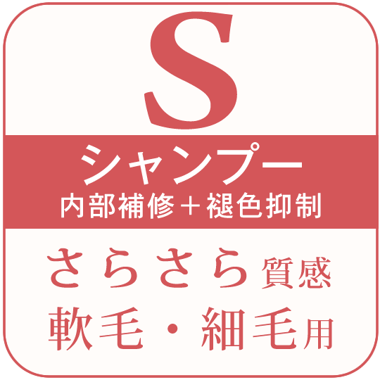 髪質別に(さらさら・しなやか・しっとり)タイプが揃っていて幅広く対応します